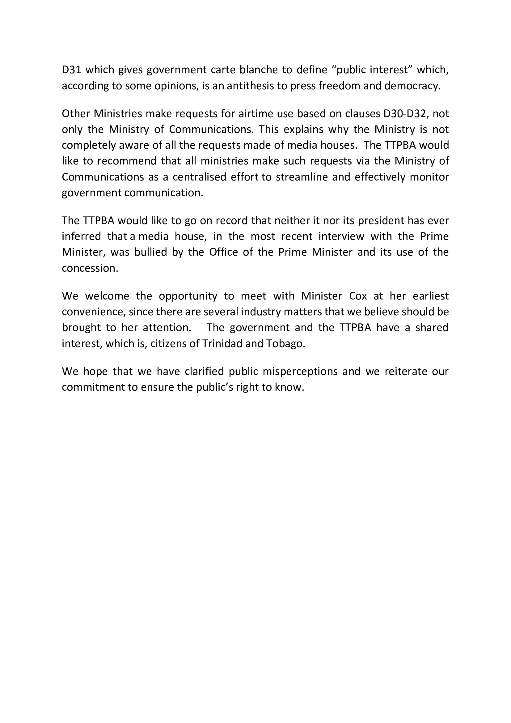TTPBA PRESS RELEASE PUBLIC'S RIGHT TO KNOW 16 JAN 2020